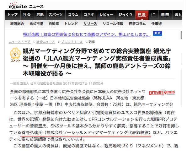 この度、観光庁後援、JLAA(日本地域広告社協会)主催の「観光マーケティング実務責任者養成講座」で、著名な先生方と名を連ねさせていただき「ネットマーケティングとSNS活用」のパートを担当することになりました。