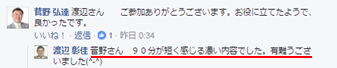 次に多いのは「内容が濃い」「90分があっと言う間」「非常にわかりやすい」でした。