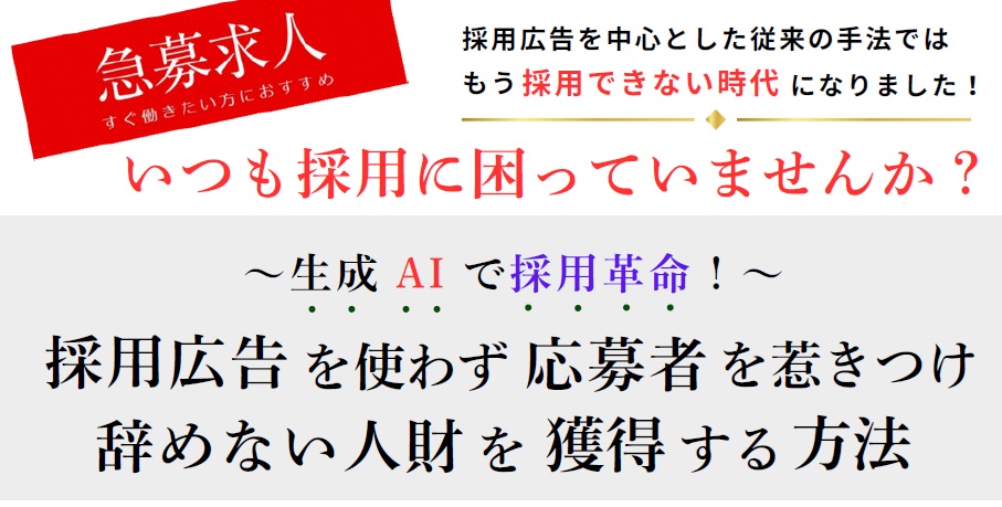 「生成AIで採用革命! 採用広告を使わず応募者を惹きつけ、辞めない人財を獲得する方法」
